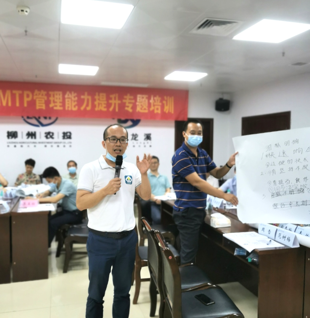 2022年7月19日-20日,重大同浩組織培訓師為柳州農投集團開(kāi)展了主題為《MTP管理能力綜合訓練》的培訓課程。兩天的培訓學(xué)習,通過(guò)案例討論進(jìn)行實(shí)戰訓練、小組分享、講師點(diǎn)評講解,參訓學(xué)員紛紛表示培訓師教授的管理方法和技巧實(shí)用性強,拓寬了管理思路,有助于管理能力的提升。本次培訓取得圓滿(mǎn)成功。